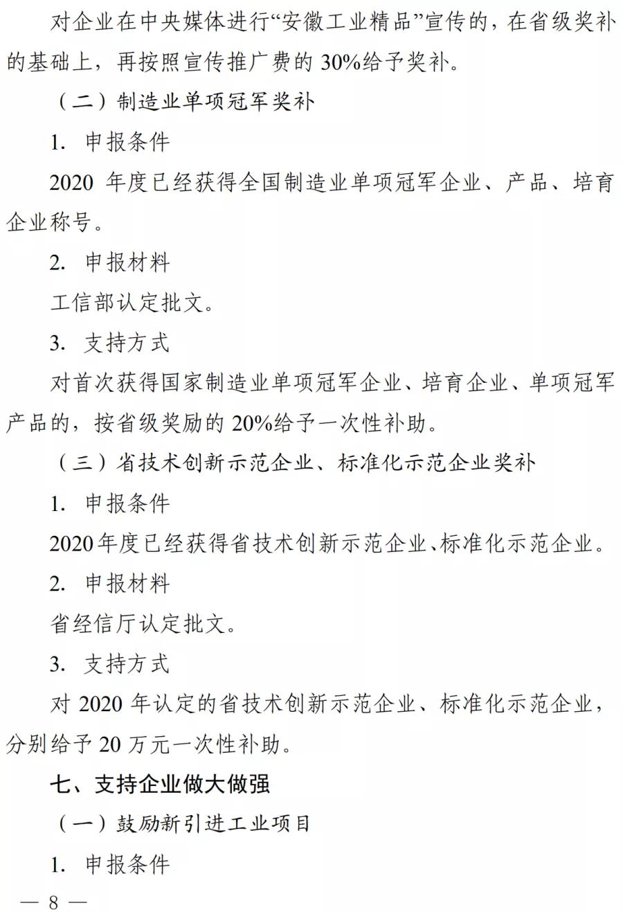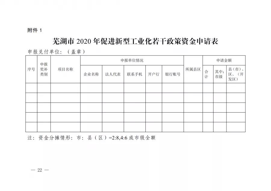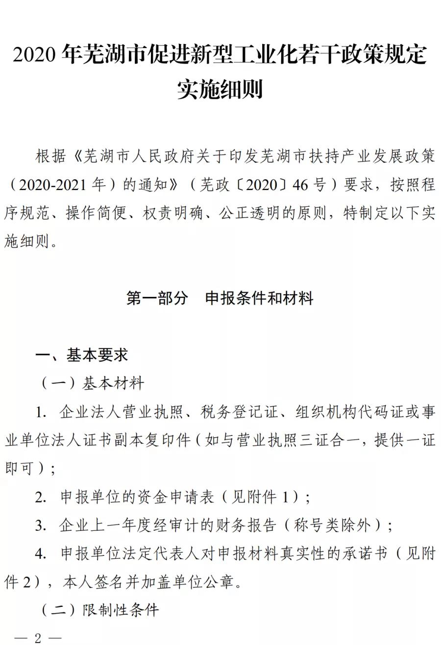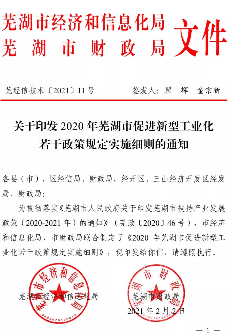 蕪湖市2020年促進(jìn)新型工業(yè)化若干政策規(guī)定實施細(xì)則印發(fā) 作者: 安徽新天源建設(shè)咨詢有限公司 最后修訂: 2021-02-05 08:59:23 摘要: 附件